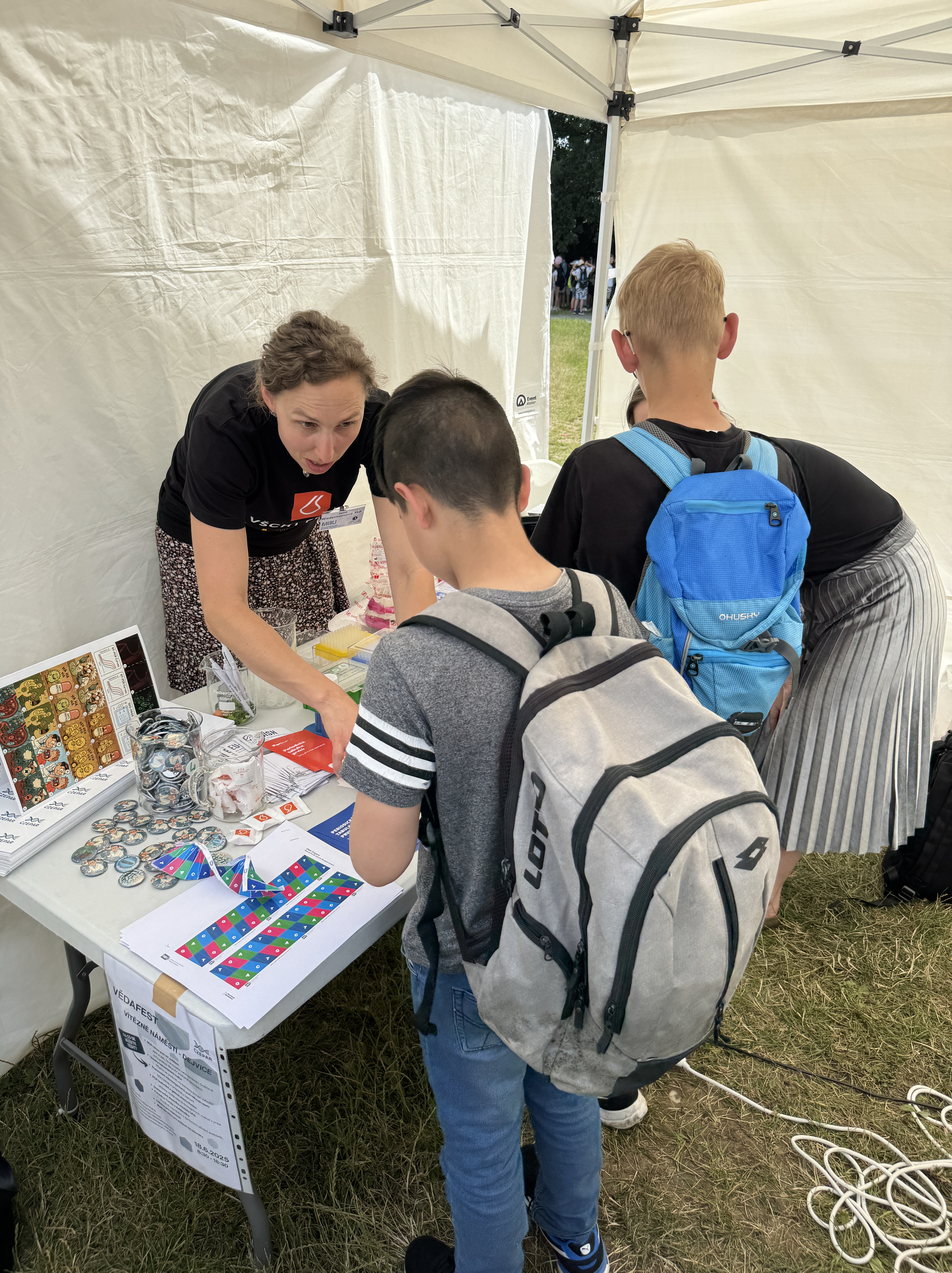 Děkujeme všem, kteří se u našeho stánku zastavili – ať už na chvíli, nebo na delší diskusi. Vaše zvědavost, otázky a nadšení pro vědu nám ukazují, že popularizace výzkumu má smysl. Těšíme se na setkání na dalších akcích, kde vám opět přiblížíme vědu zblízka.
